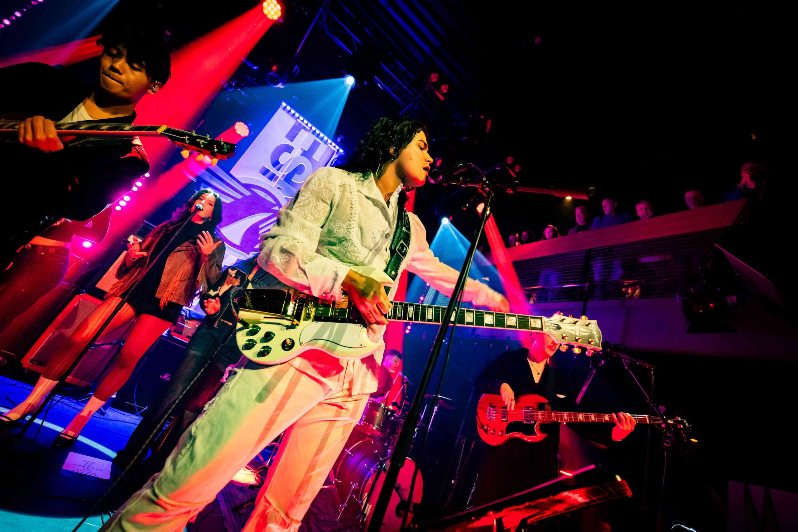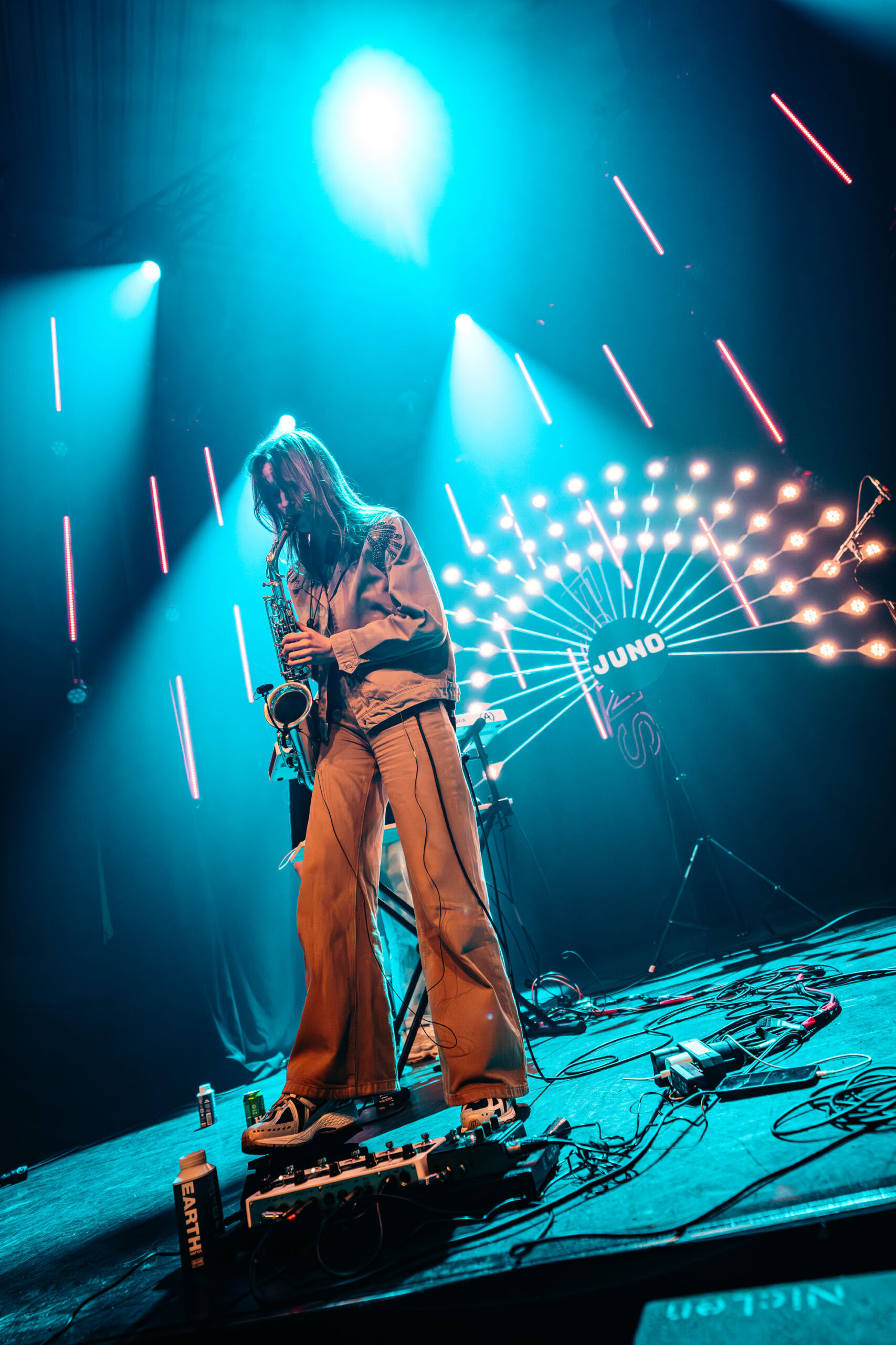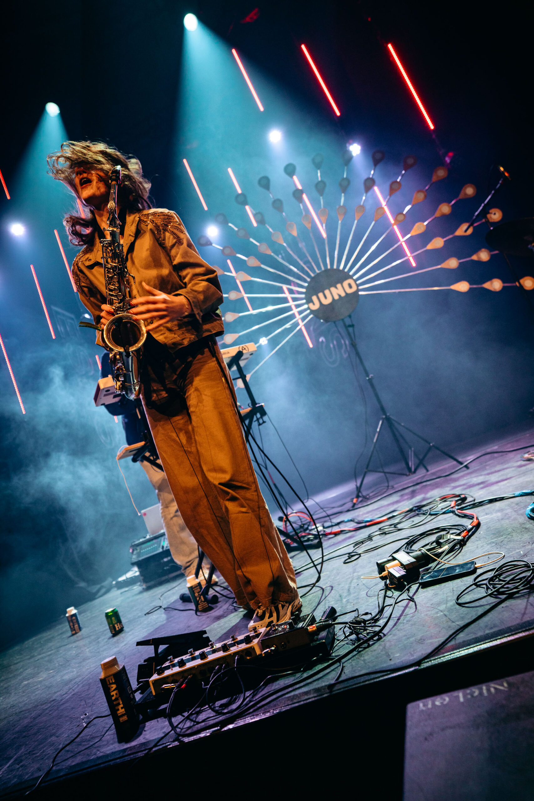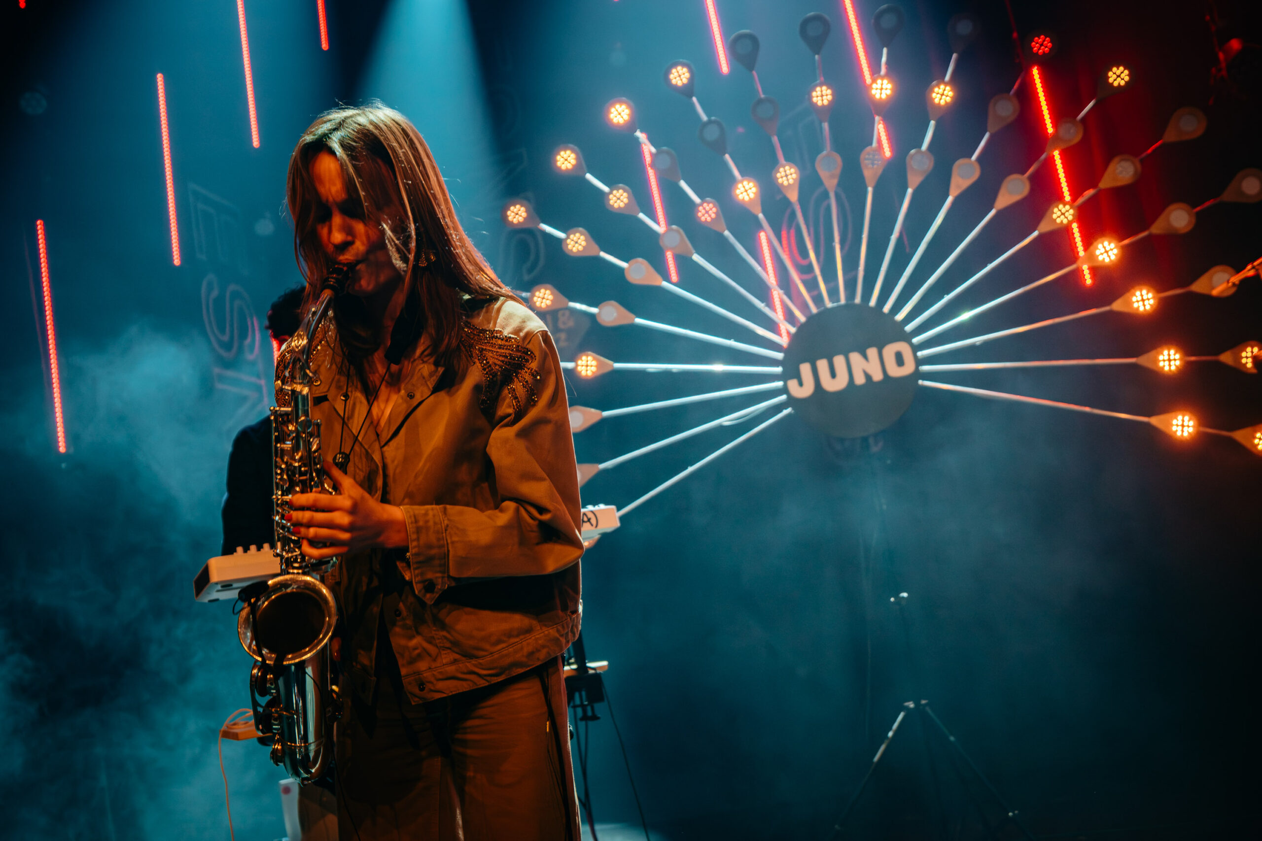 Na al die intensiteit en heftige gitaren, sluiten we Noorderslag af met aanstekelijke en speelse jazzdance grooves van Juno. Het collectief heeft een aparte bezetting: synths, drums, tuba en altsax. Het viertal brengt een lekkere combi van heavy brass en fijne melodiethema’s gespeeld door saxofoniste Jeline Weeling.