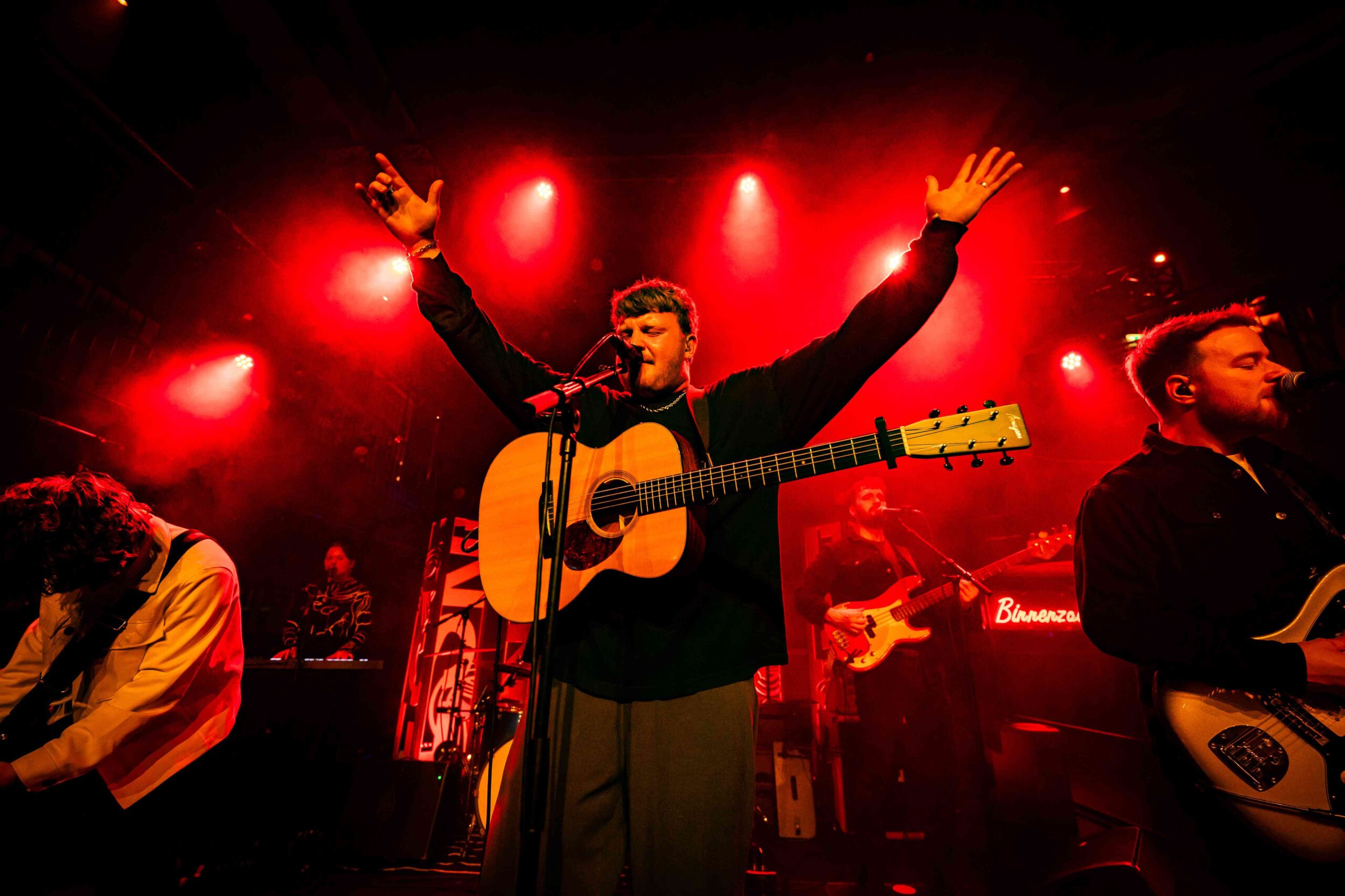 In de foyer staat de 9-koppige De Nachtwacht. Deze groep met deels Indonesische roots, is het kindje van frontman Jiri Taihuttu, alias Jiri11 (bekend van hiphopformatie ANBU). In deze band brengt hij een mix van softe Neder poprock, waarbij gelaagde gitaarriffs, uitgesponnen solo’s en prima arrangementen klinken. De zang en verhaalkunst klinkt echter wel erg gladjes en raakt en vlak er daardoor komt de muziek niet echt binnen.