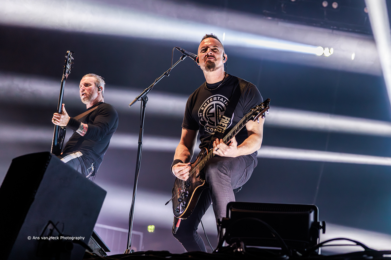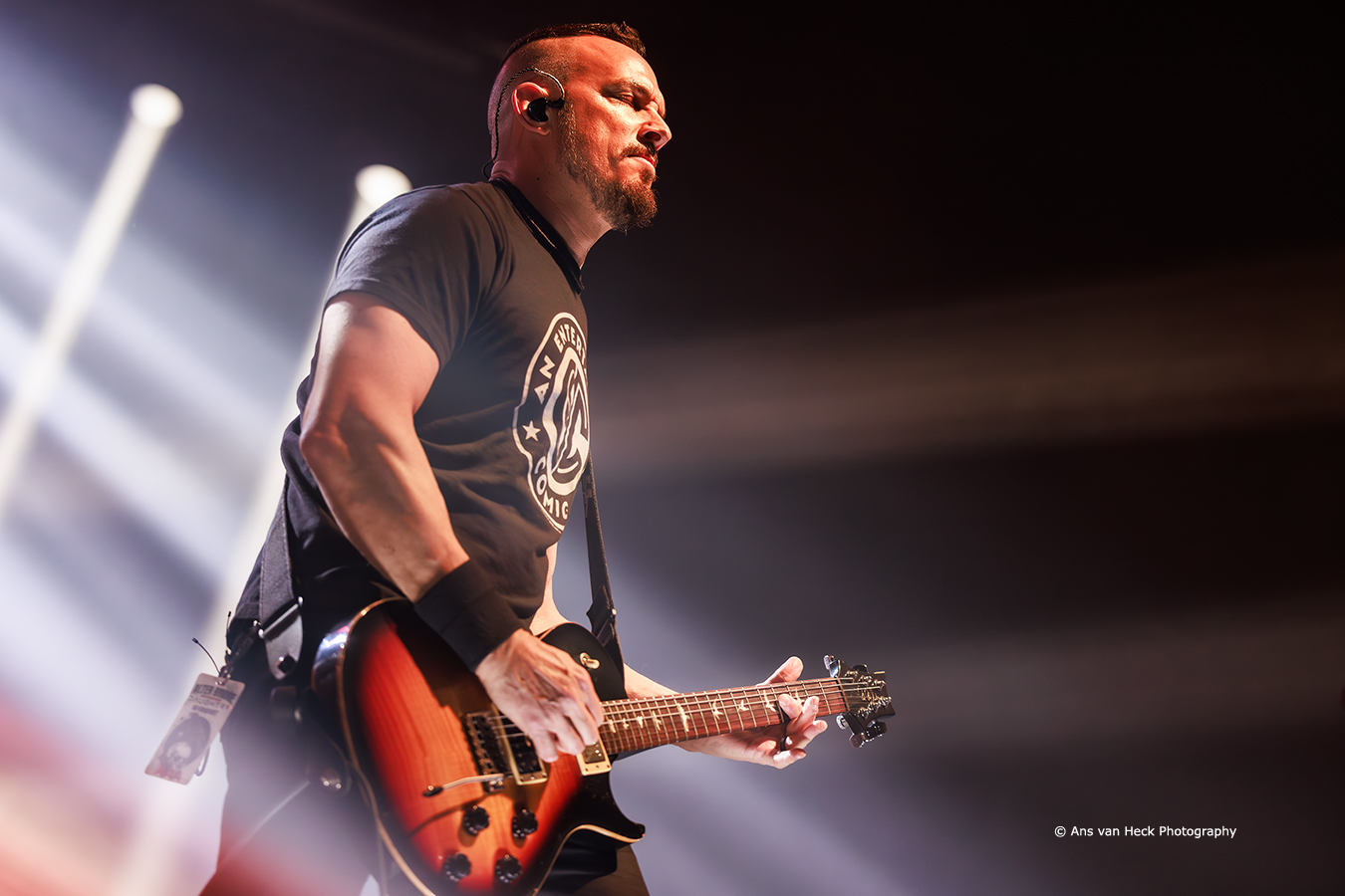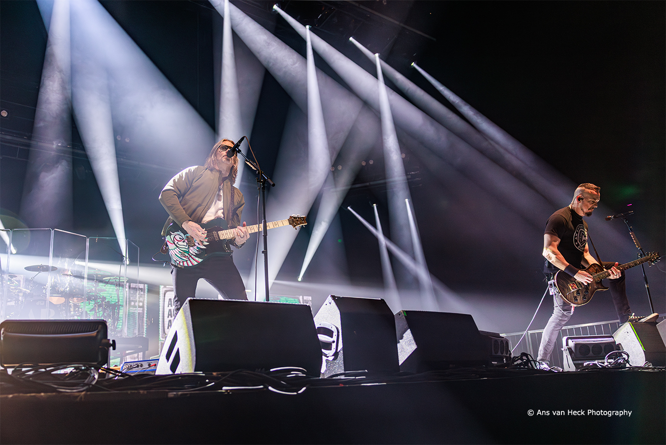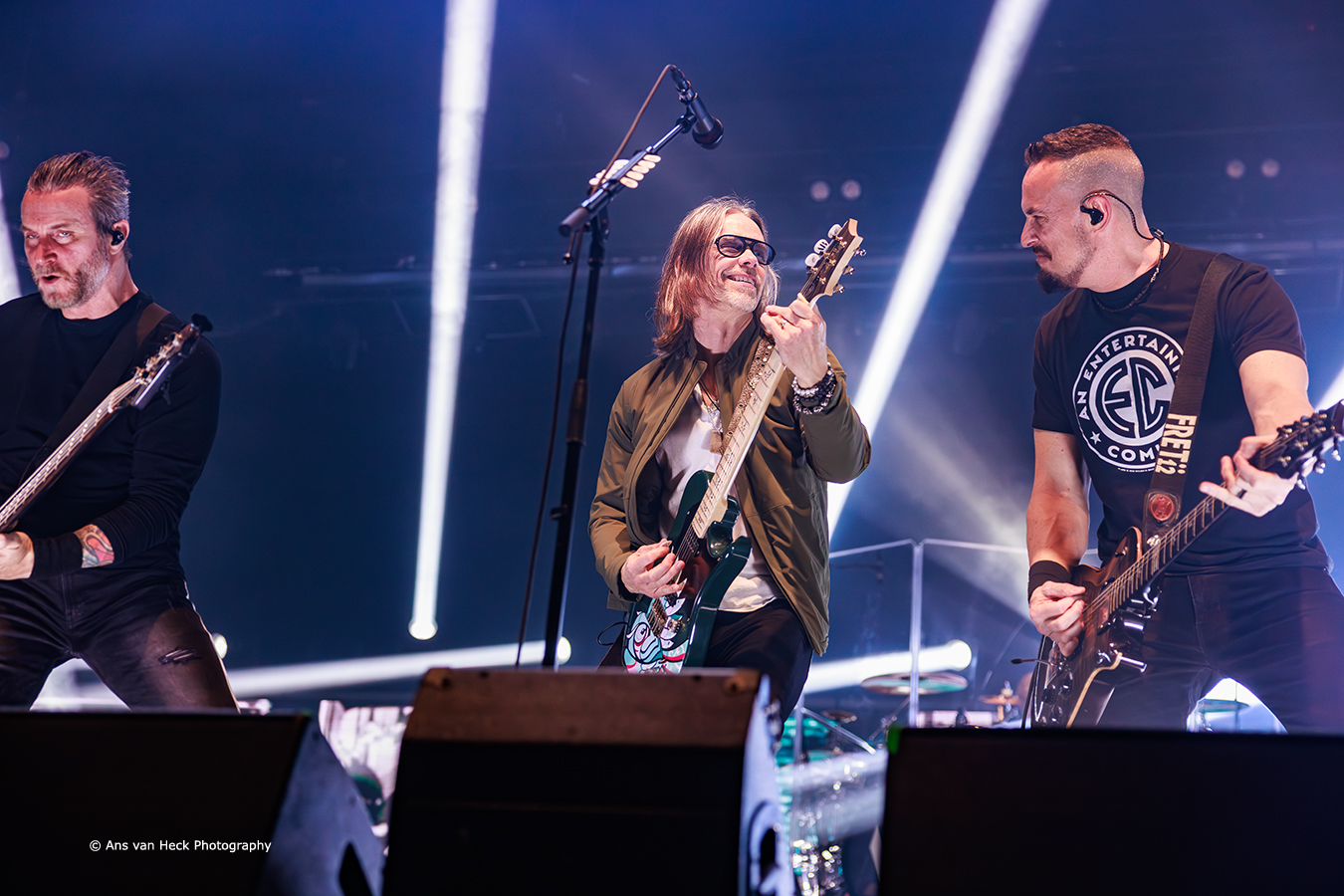 Een ander moment van menselijkheid volgt als de hele zaal massaal een verjaardagsliedje inzet voor Phillips. Alter Bridge breekt de show even af en blijft aandachtig luisteren. Het tekent de band. Ze zijn de ‘muzikanten-band’ gebleven, wars van sterallures.