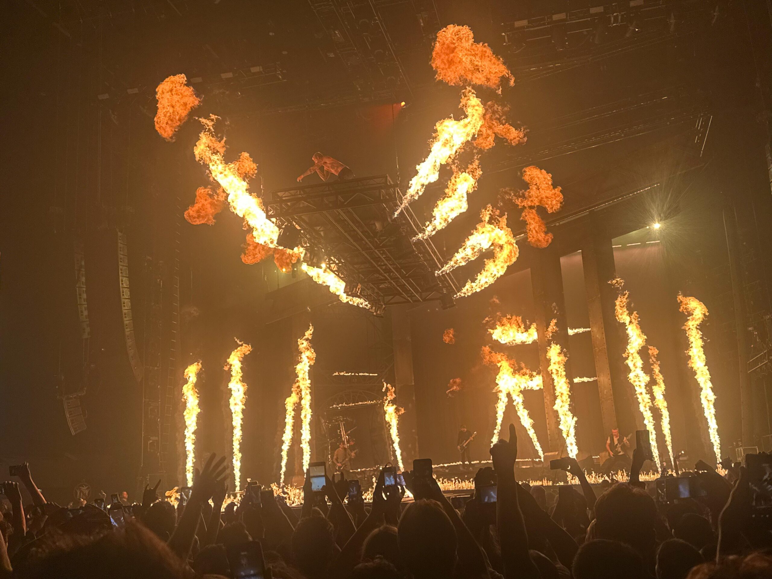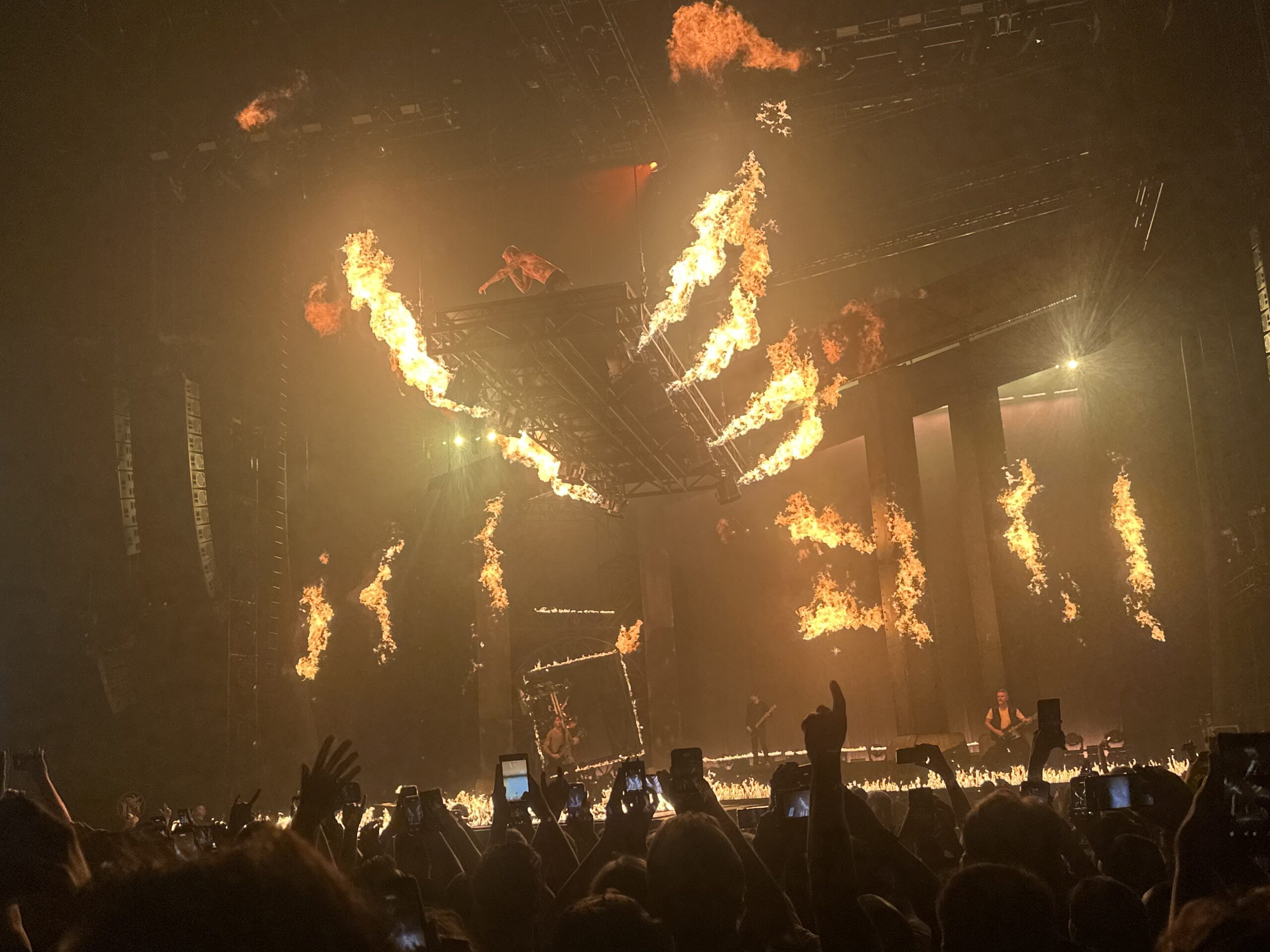 Dat verschil is voelbaar. Parkway Drive heeft hun Nederlandse fanschare sinds de AFAS Live-show van enkele jaren geleden niet kunnen uitbreiden. De reden dat ze toch naar de Ziggo Dome uitwijken, is simpel: de gigantische constructie van staal, vlammenwerpers, opstijgende catwalks, vuurwerk en zelfs een roterend drumplatform past simpelweg nergens anders. Het roept de vraag op hoeveel vrachtwagens en mankracht hieraan vooraf zijn gegaan. Maar zodra de eerste tonen klinken, is duidelijk: vanavond gaat niet om cijfers, maar om geschiedenis schrijven.